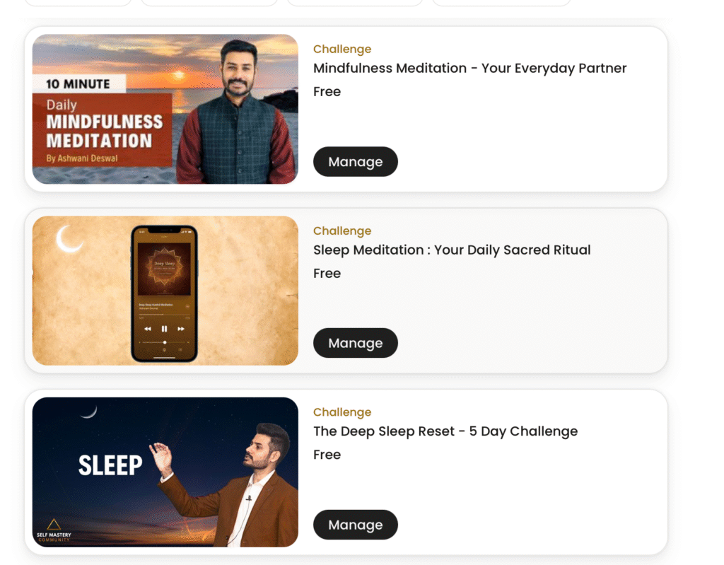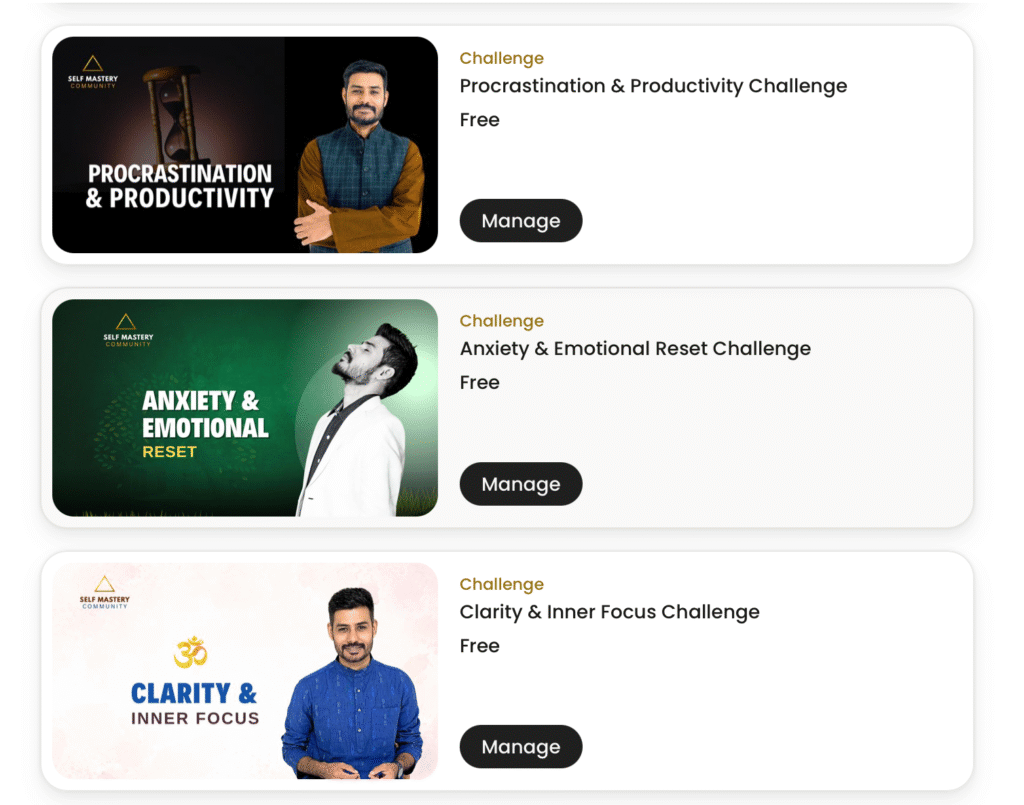 At present, Self Mastery Pro does not include live Q&A or interactive sessions. You get access to structured guided challenges, meditations, and wisdom tools to practice at your own pace.